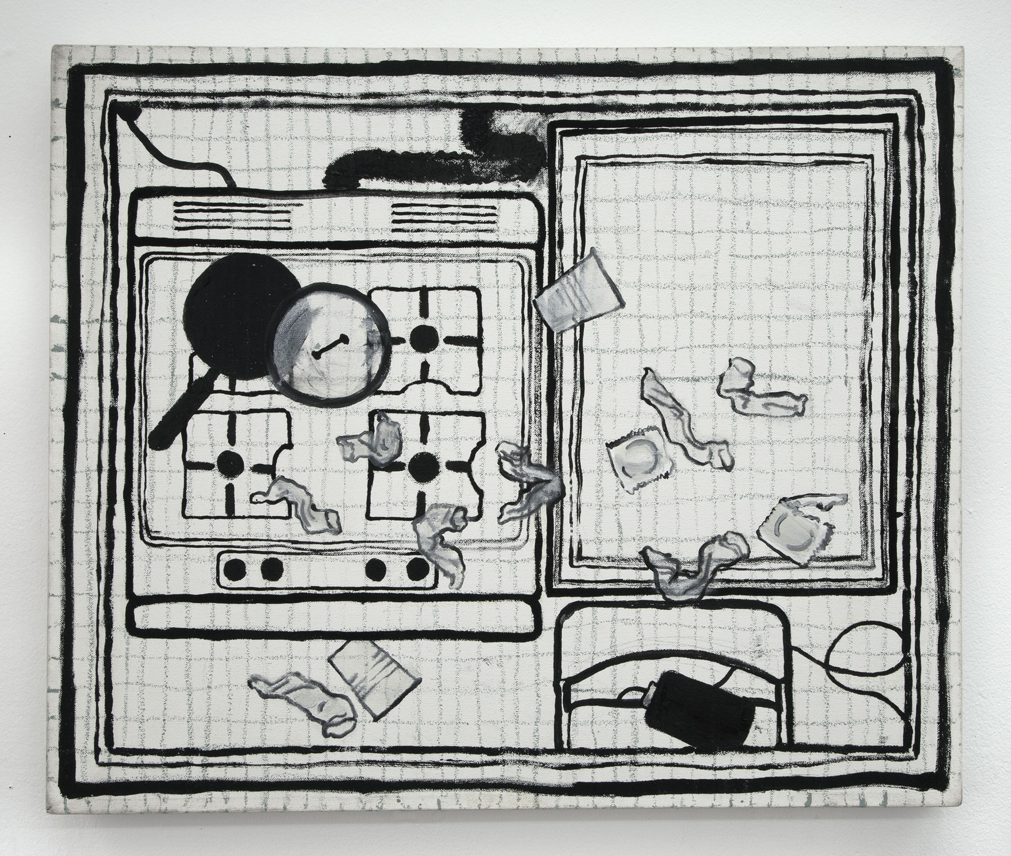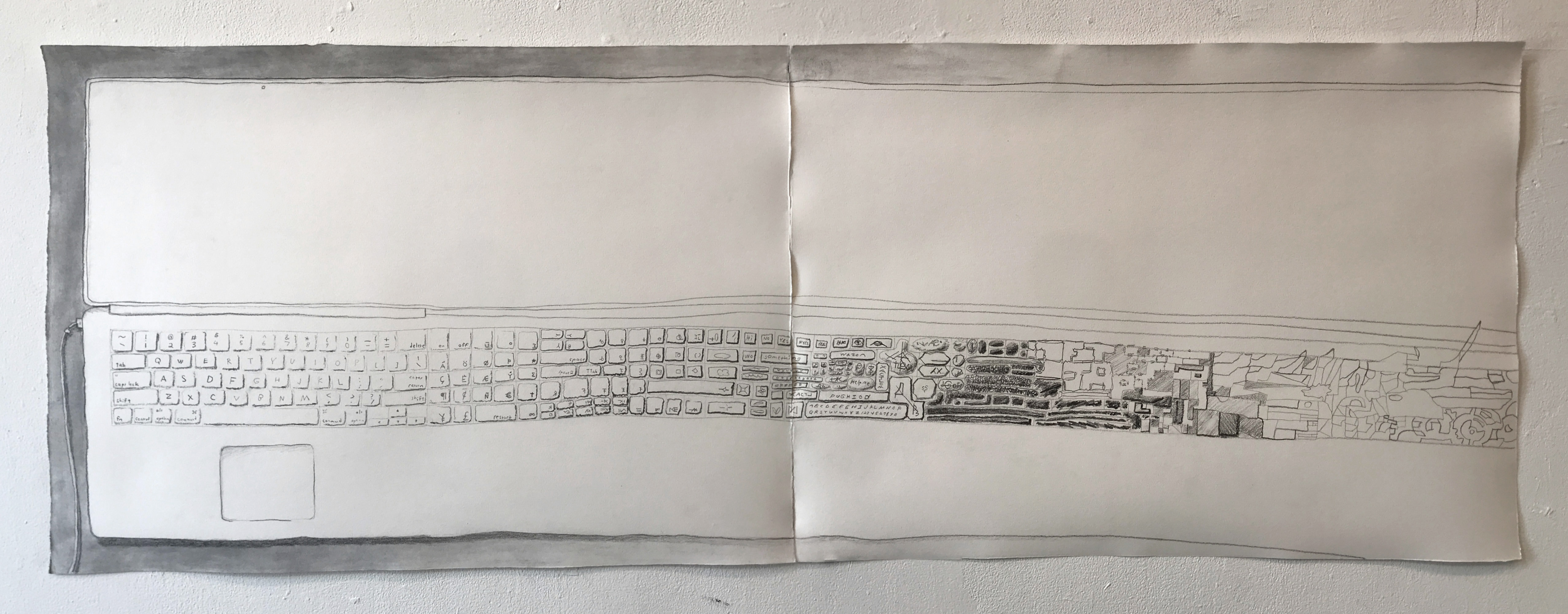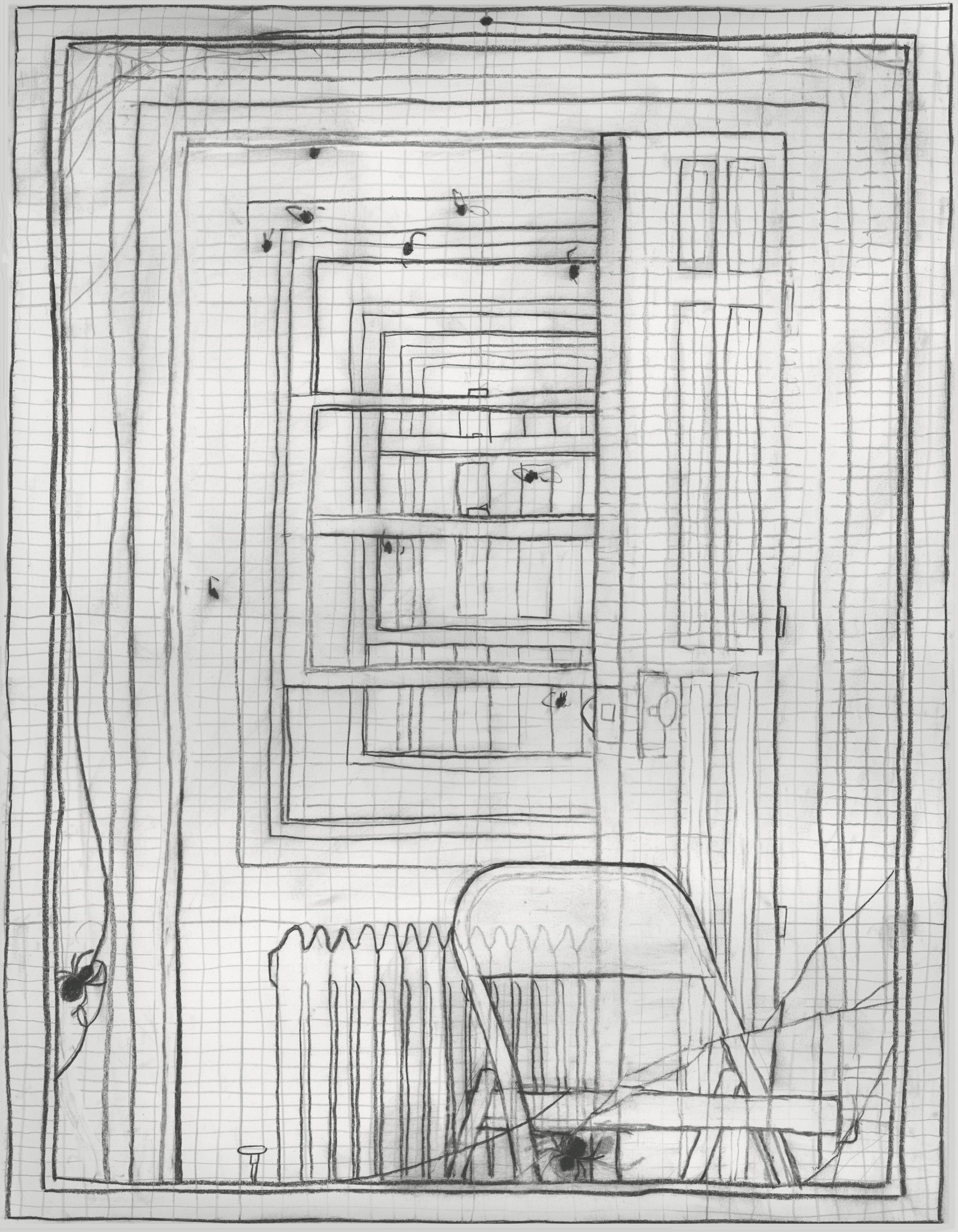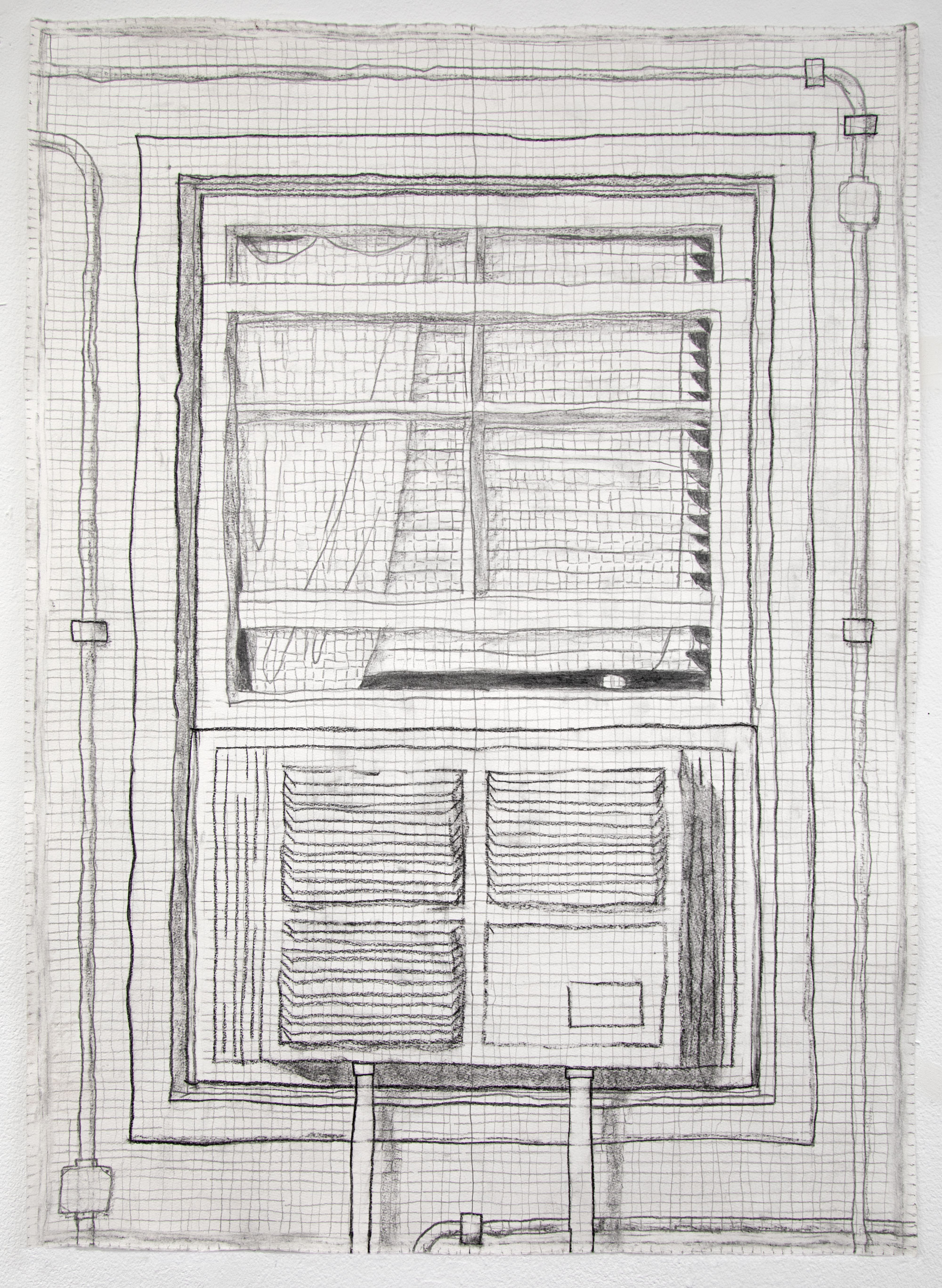 NYC apt 2019, charcoal and pencil on paper, 22x17 inches