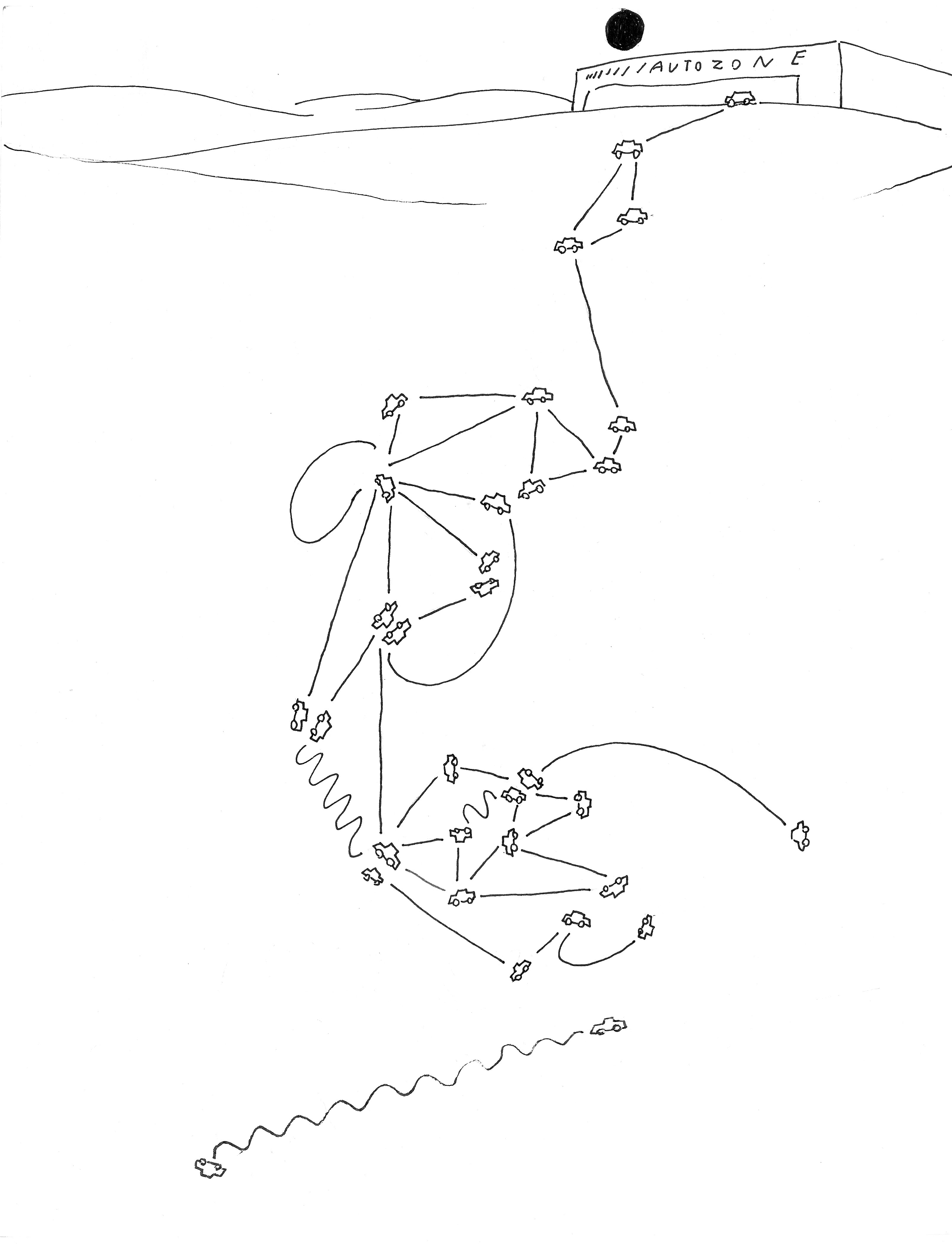 Deals and Savings at AUTOZONE, 2020, ink on paper, 14 x 11 inches