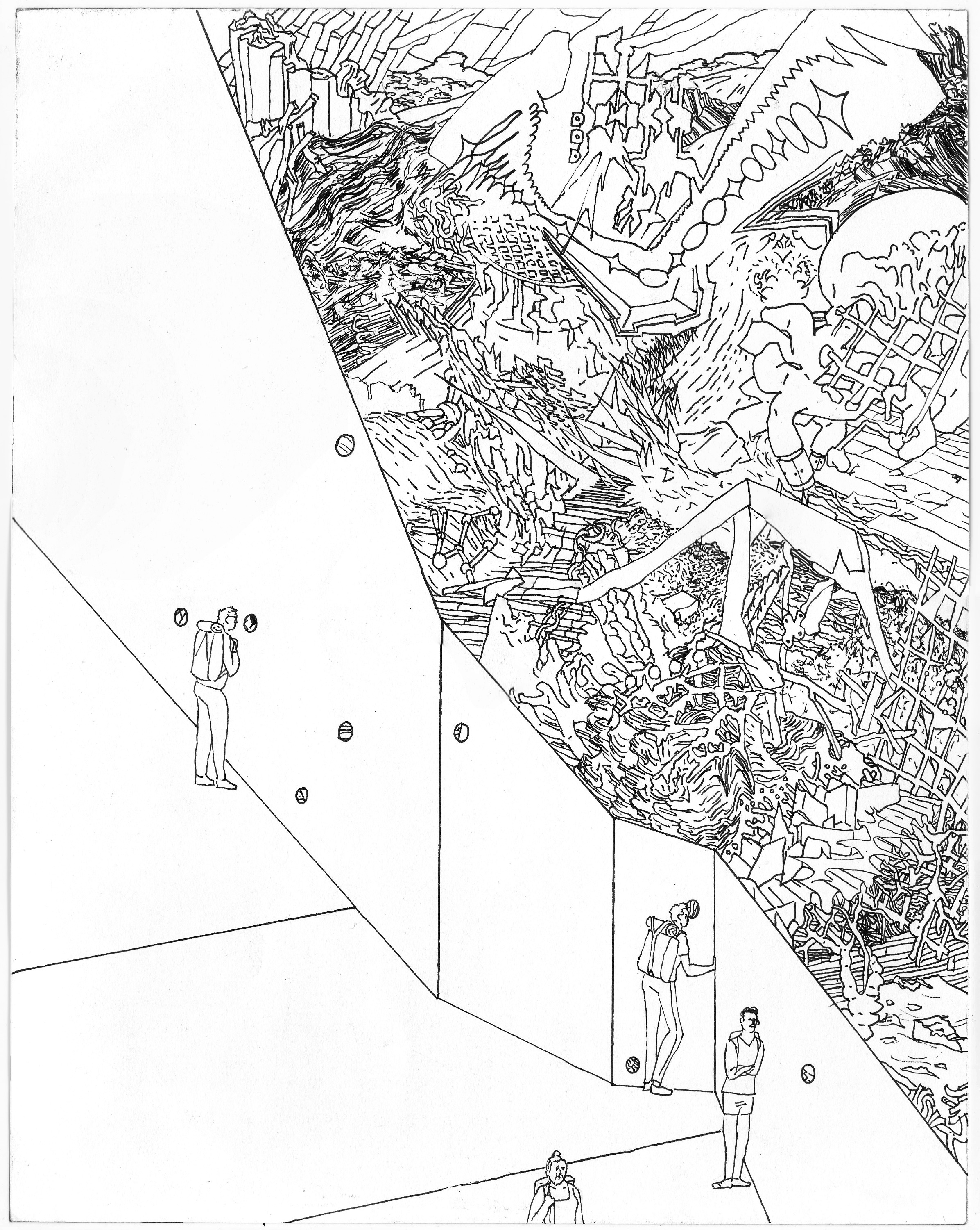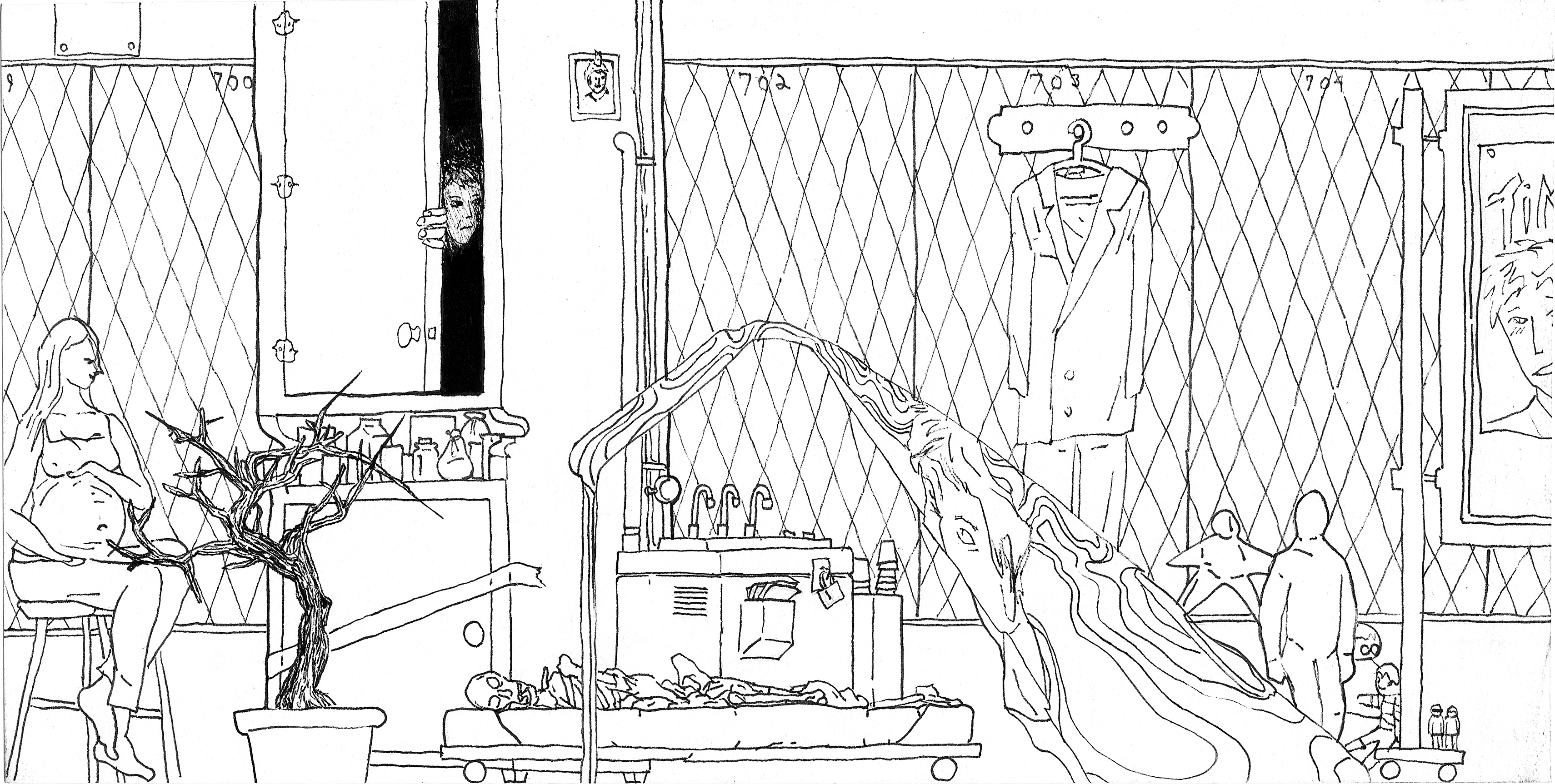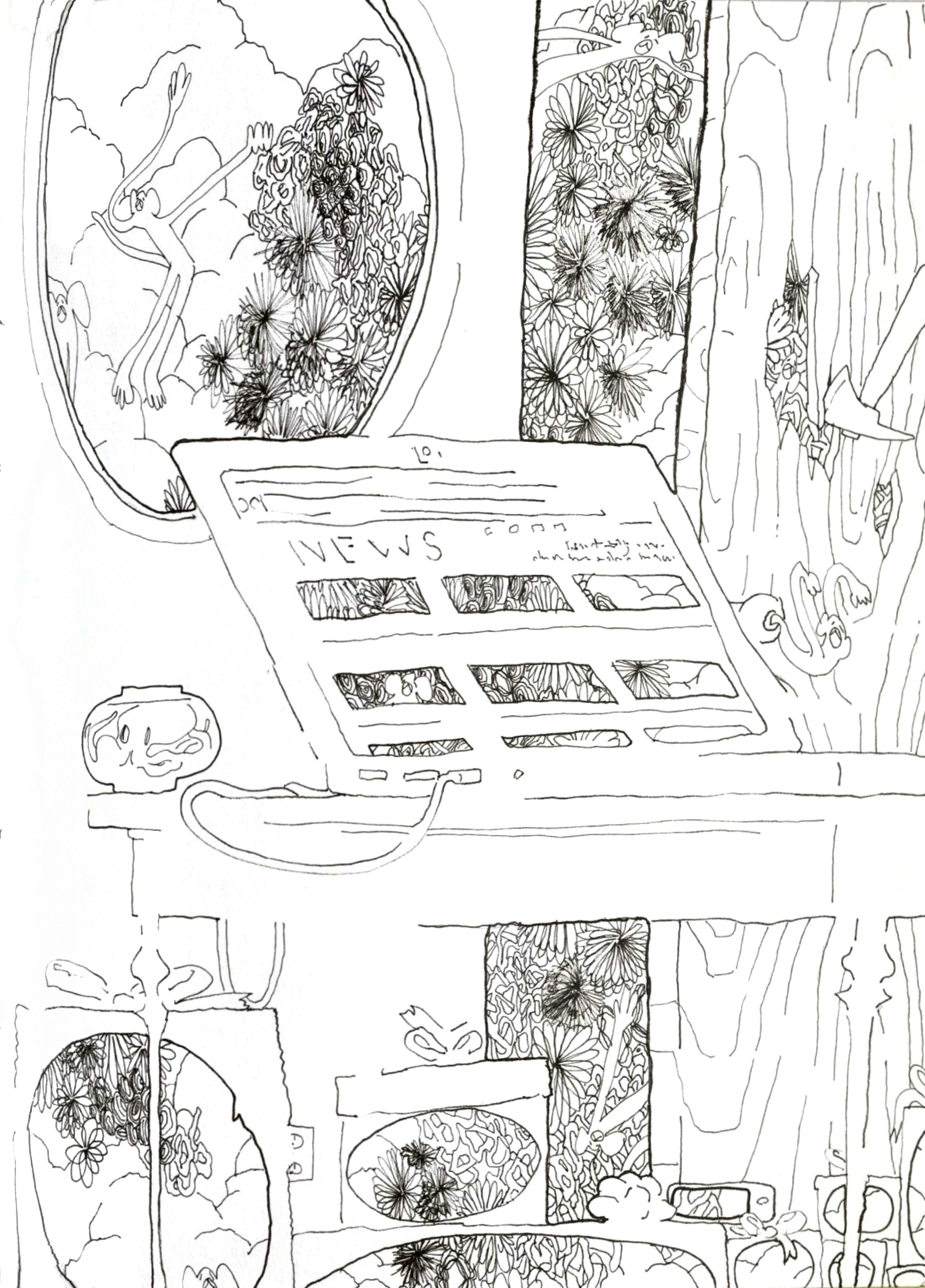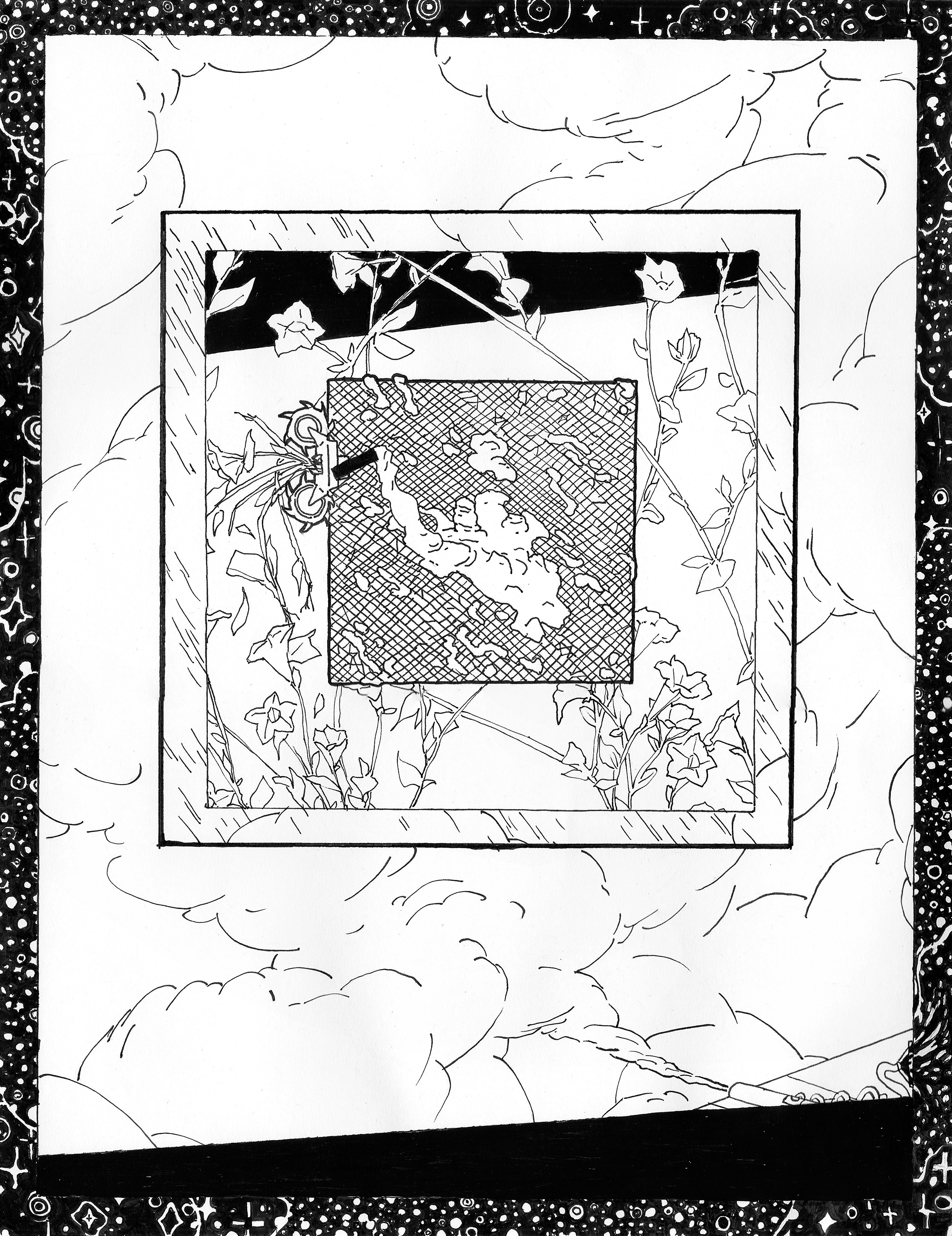 peepholes by dddddan 2018, ink on paper, 14x11 inches