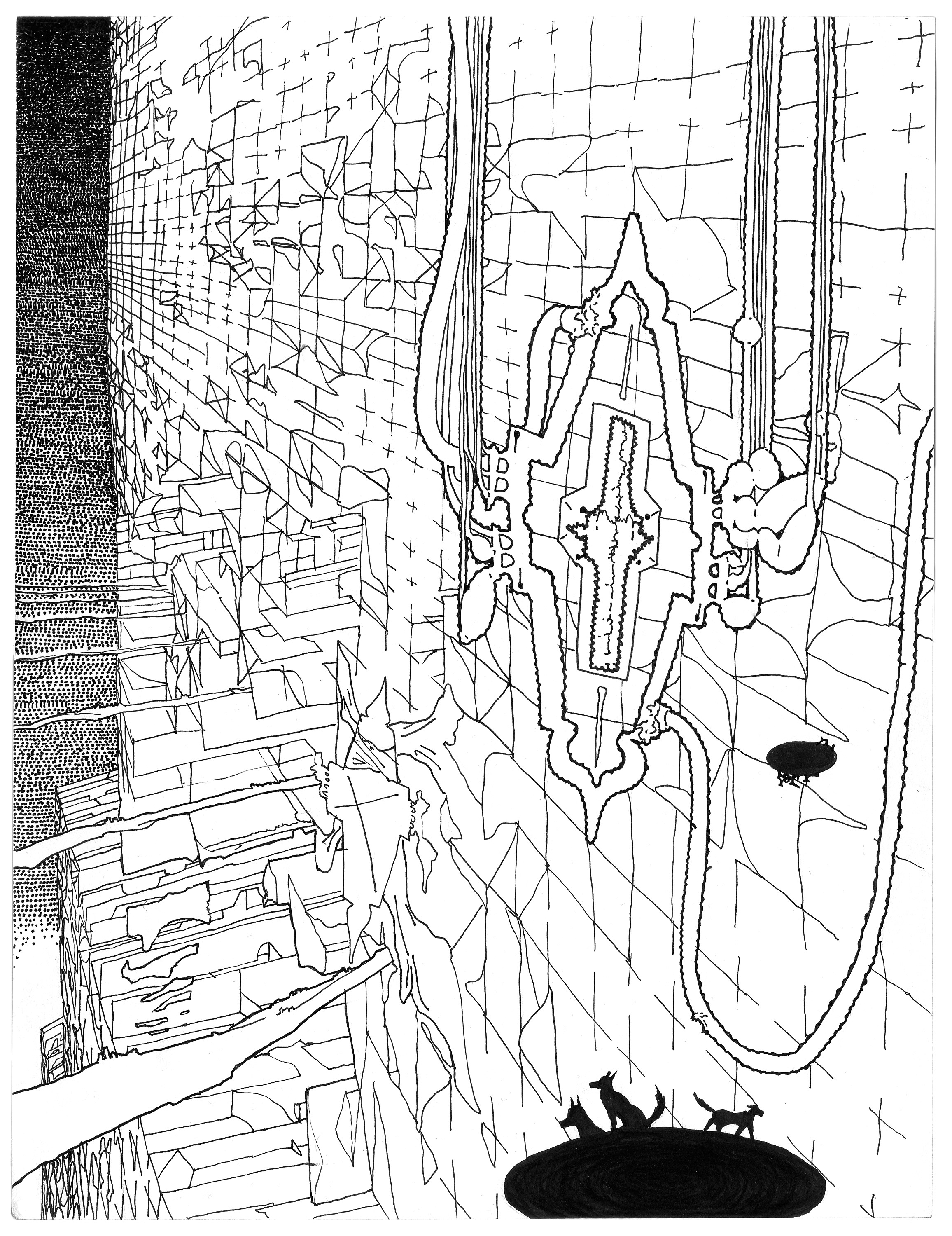 Unleashed Dogs POV, 2020, ink on paper, 8½ x 13 inches